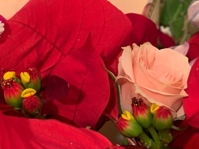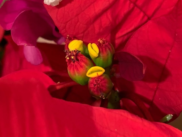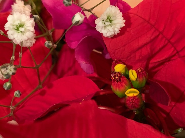 ポインセチアの中に咲いてるお花です。