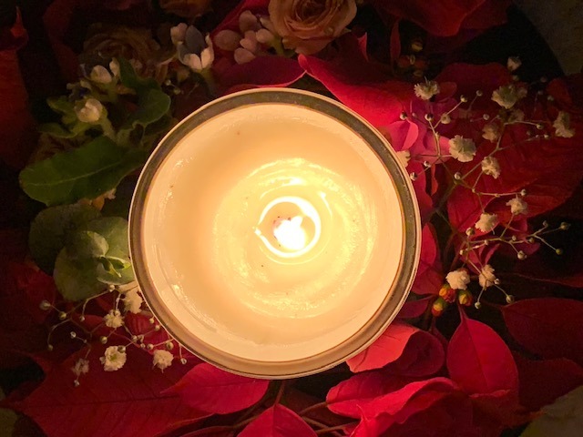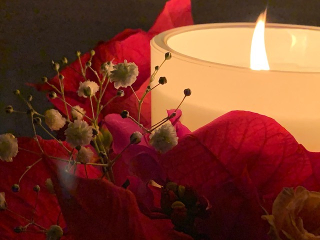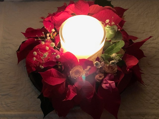 その廃棄寸前のお花でキャンドルリースを作ってみた。