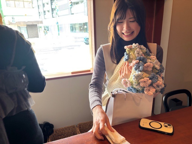 わたくしまでニットのお花束いただいちゃって。
